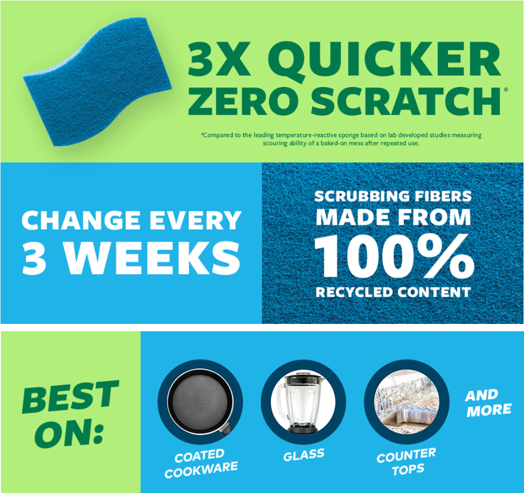 - 3X QUICKER, ZERO SCRATCH: Cleaning sponges are 3x quicker compared to the leading temperature-reactive sponge based on scouring ability after repeated use